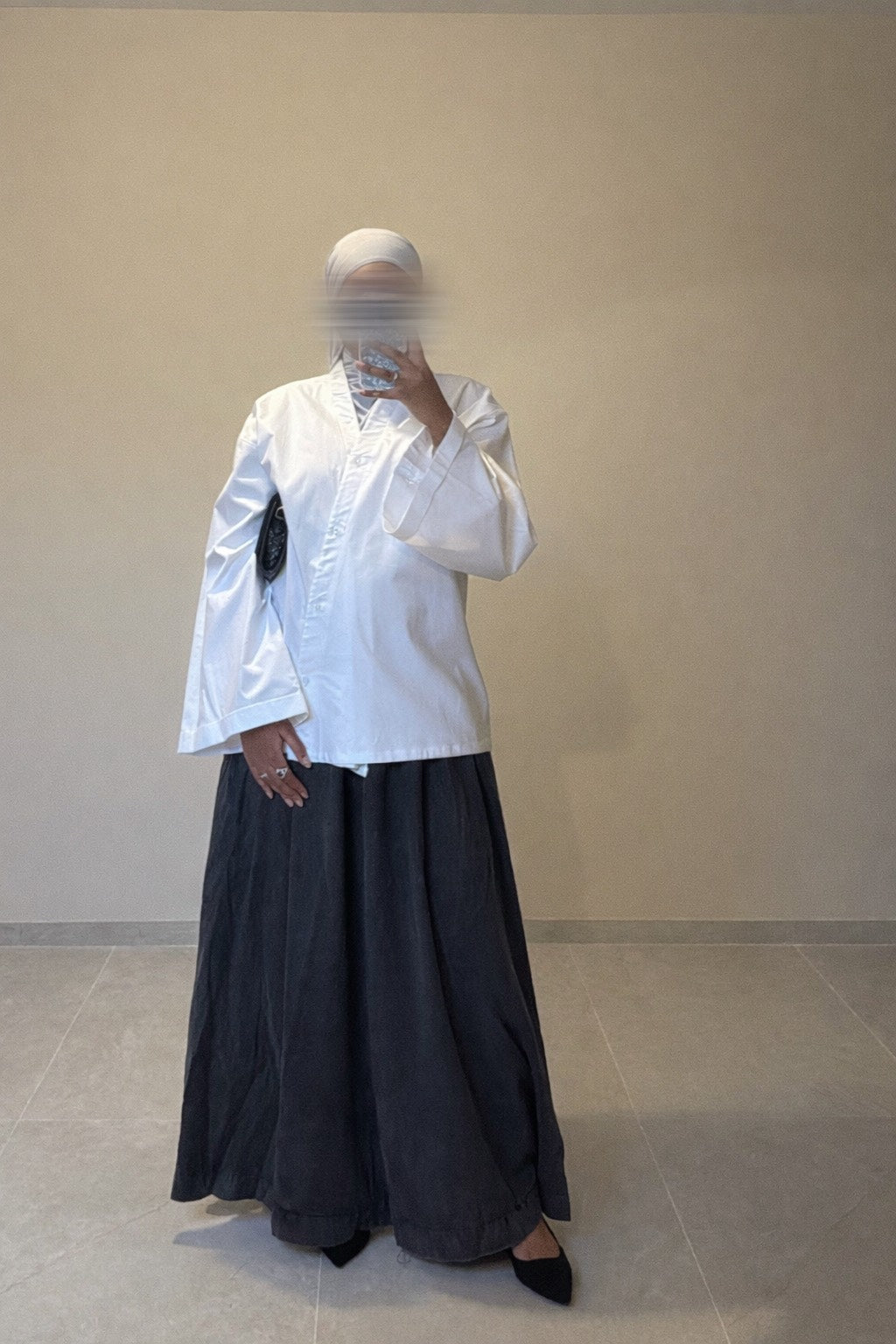 Jupe longue en denim à la coupe évasée et fluide, confectionnée dans un jean souple offrant un tombé naturel et confortable, avec une taille élastiquée assurant une bonne adaptabilité et une aisance au porté, pensée pour une silhouette féminine et équilibrée tout en restant facile à associer avec des hauts ajustés ou des chemises.